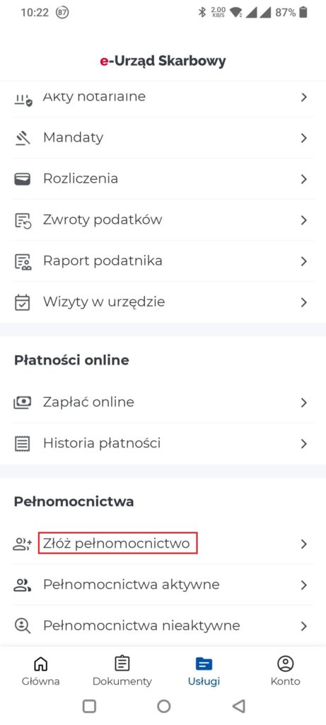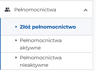 bądź z poziomu sekcji ‘Usługi’ → ’Pełnomocnictwa’ →‘Złóż pełnomocnictwo’: