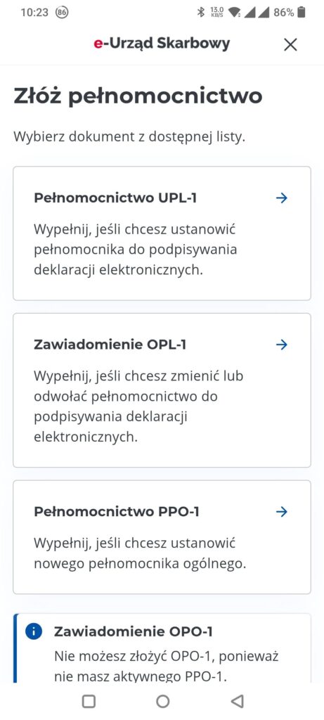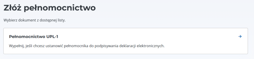 W obu przypadkach wybierz opcję ‘Pełnomocnictwo UPL-1’: