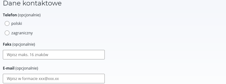 Na podstawie rejestru CEIDG, system automatycznie uzupełni dane adresowe. Sprawdź, czy są poprawne.