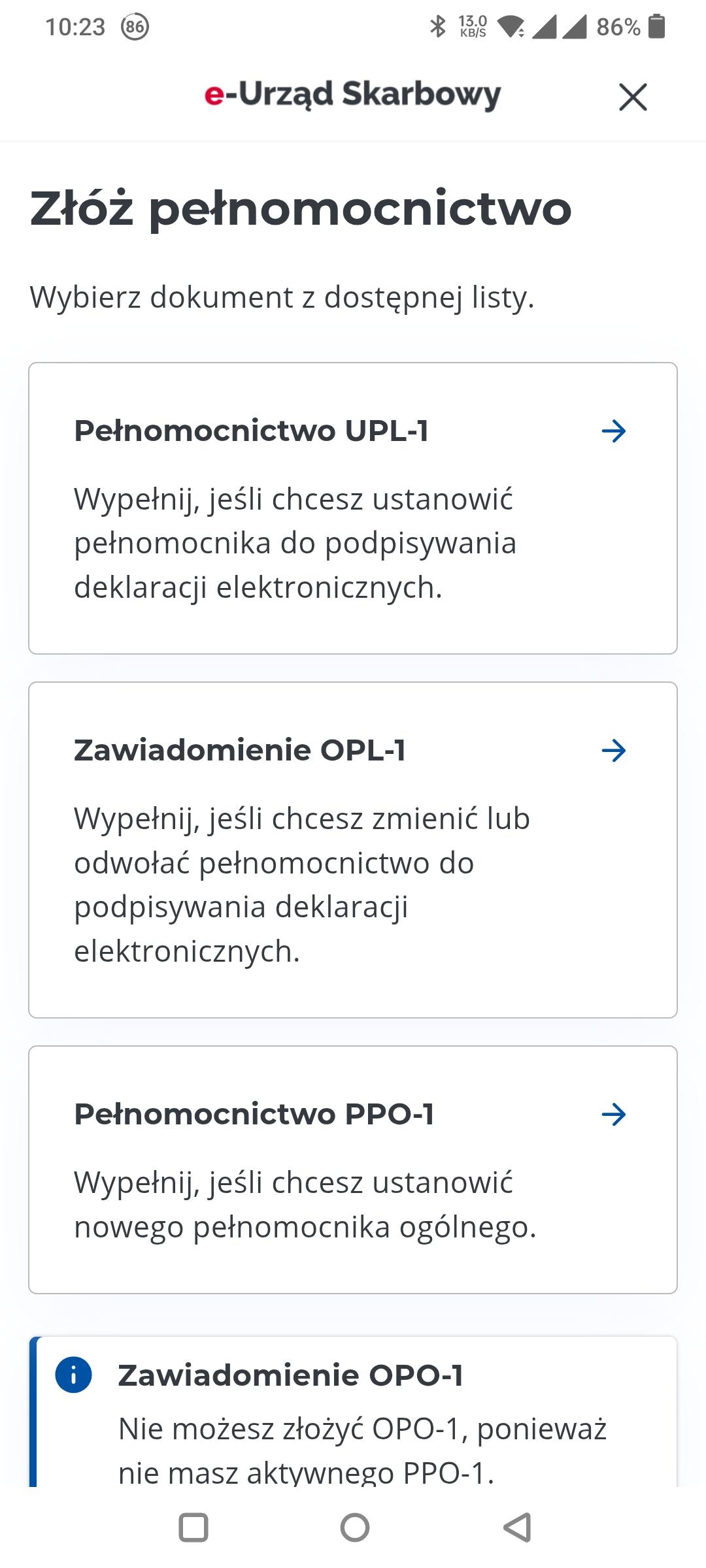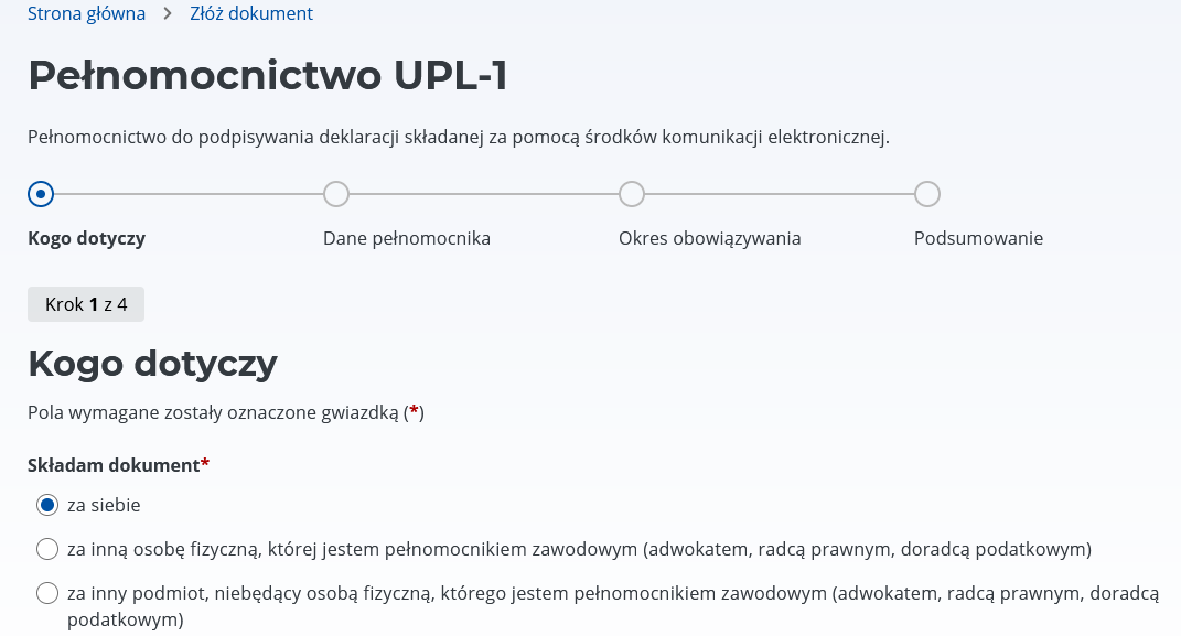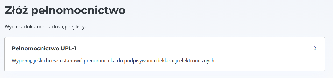 W obu przypadkach wybierz opcję ‘Pełnomocnictwo UPL-1’: