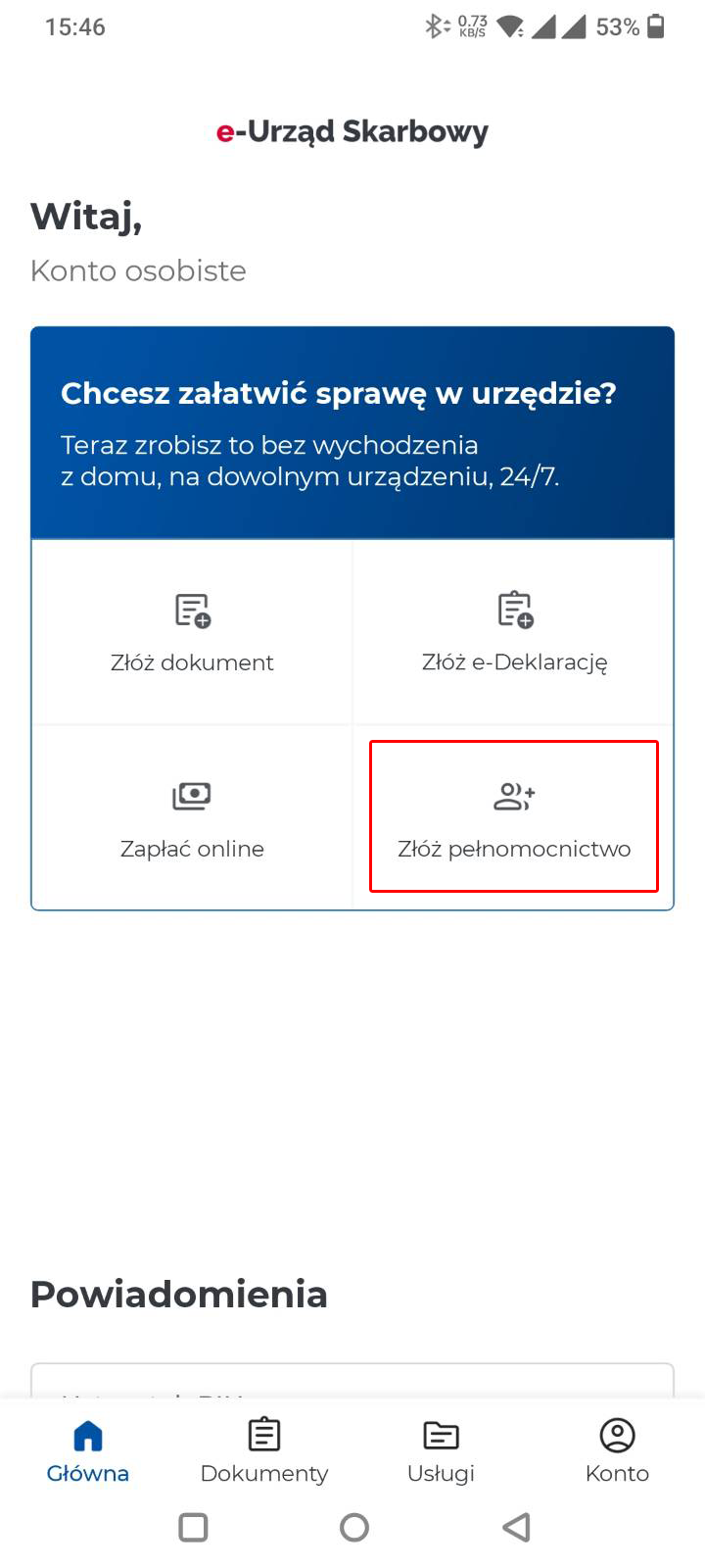 Po zalogowaniu się do portalu, przejdź do sekcji „Pełnomocnictwa” i wybierz opcję „Złóż pełnomocnictwo”.